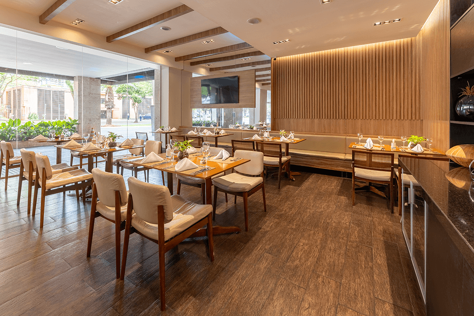 Deguste pratos preparados com ingredientes selecionados no restaurante do Hotel Deville Prime Maringá, combinando sabores regionais e internacionais em um ambiente acolhedor.